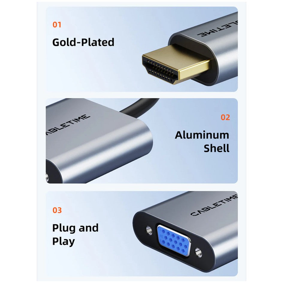 HDMI Male to VGA HD15 Female Adapter / Cabletime HDMI to VGA ACP-CP53G Aluminum Alloy