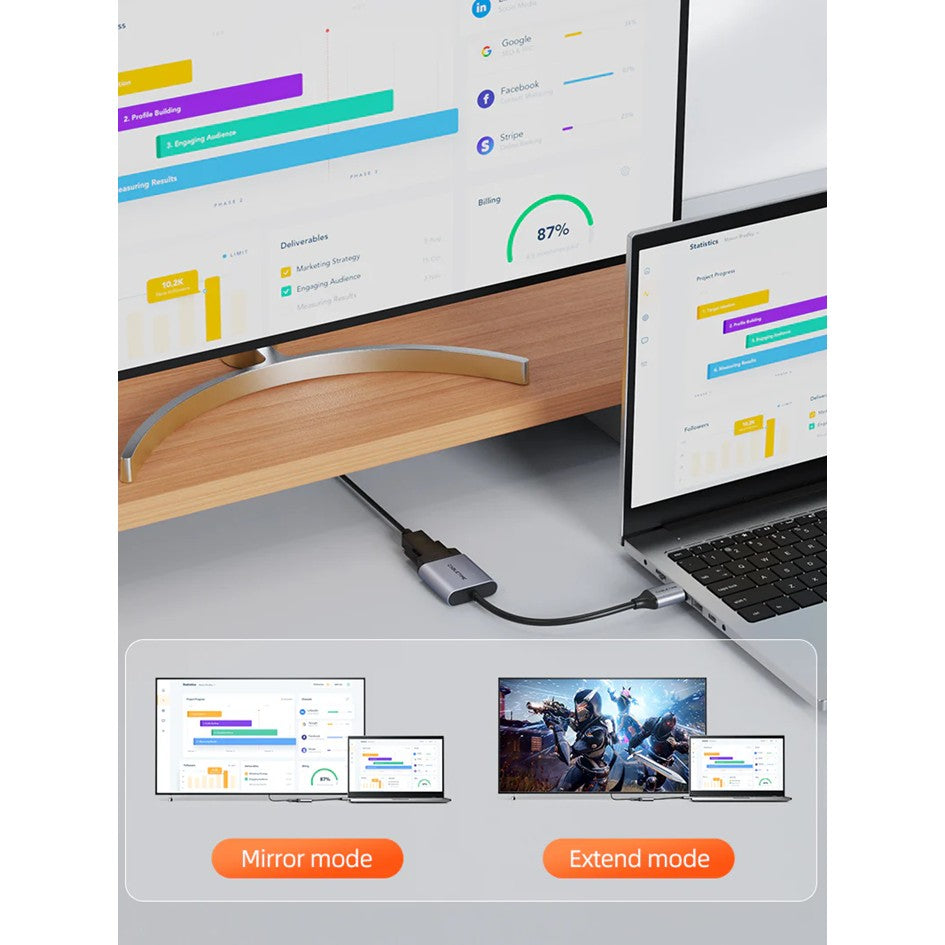 • Extend or mirror your HDMI-enabled laptop to a VGA monitor